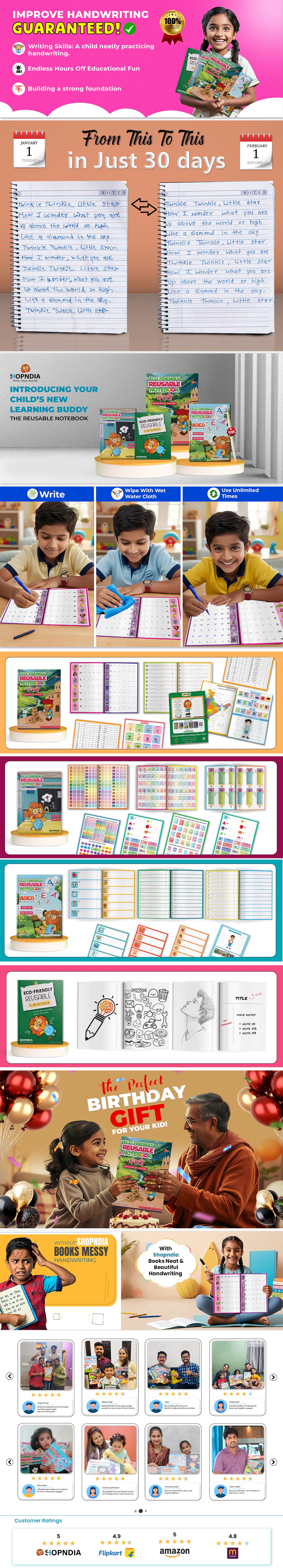 Welcome to the future of learning! Shopndia presents the Marathi Eco-friendly Reusable Notebook Combo Set – an engaging, interactive, and sustainable learning experience for your child! 🌟 Just wipe each page clean with a wet cloth to reuse over and over again! 💧♻️