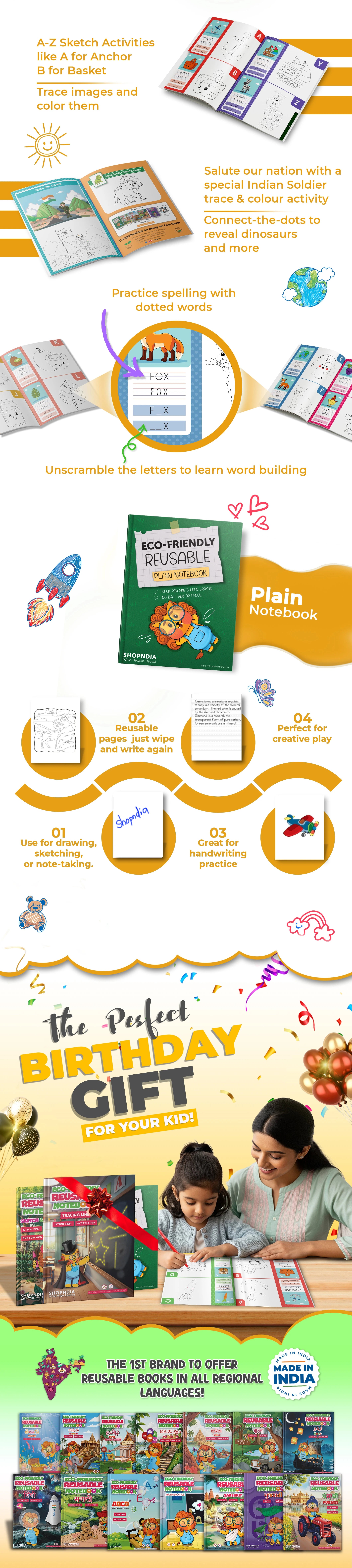Both books are reusable — just write, wipe with a wet cloth, and reuse! 🌱